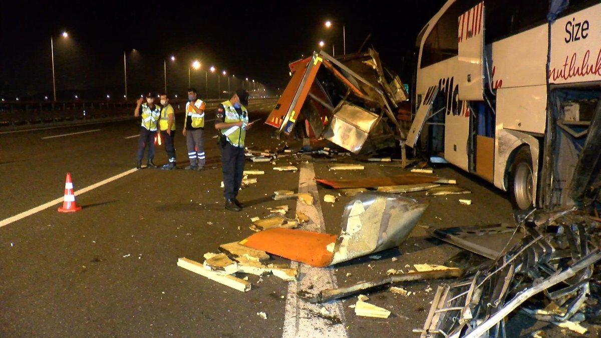 Dörtlüleri yakarak yavaş bir şekilde sağ şeritten ilerleyen kamyonet, bir süre sonra 35 yolcusu olan bir yolcu otobüsüne arkadan çarptı.