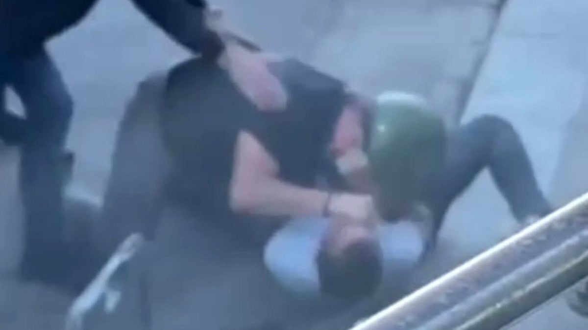 Öfkesine yenik düşen kurye, diğer şoförü yere yatırıp yumruklamaya başladı. Otobüs şoförü ise yerde çırpınarak direnmeye çalıştı.