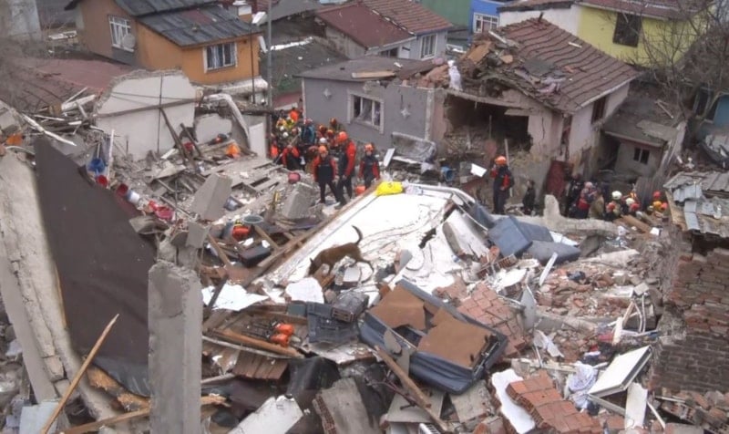 Ayvansaray Mahallesi'nde, doğalgaz patlaması sonrası iki binanın çökmesi sonucu 11 kişi enkaz altına kaldı.