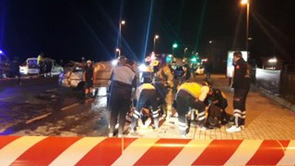 Çarpmanın etkisiyle lüks araç metrelerce ileriye savrulurken, minibüs ters döndü. Minibüsün içinde bulunan 3 kişi kazanın etkisiyle caddeye fırladı, 1 kişi ise minibüste sıkıştı.