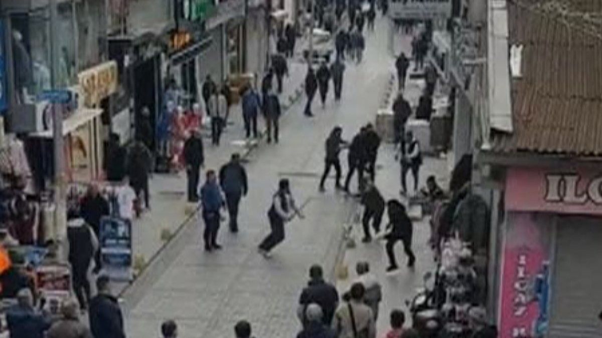 Çevredeki bir kişi tarafından cep telefonu ile görüntülenen kavga, tarafların birbirlerini ara sokaklarda kovalamasıyla son buldu.
