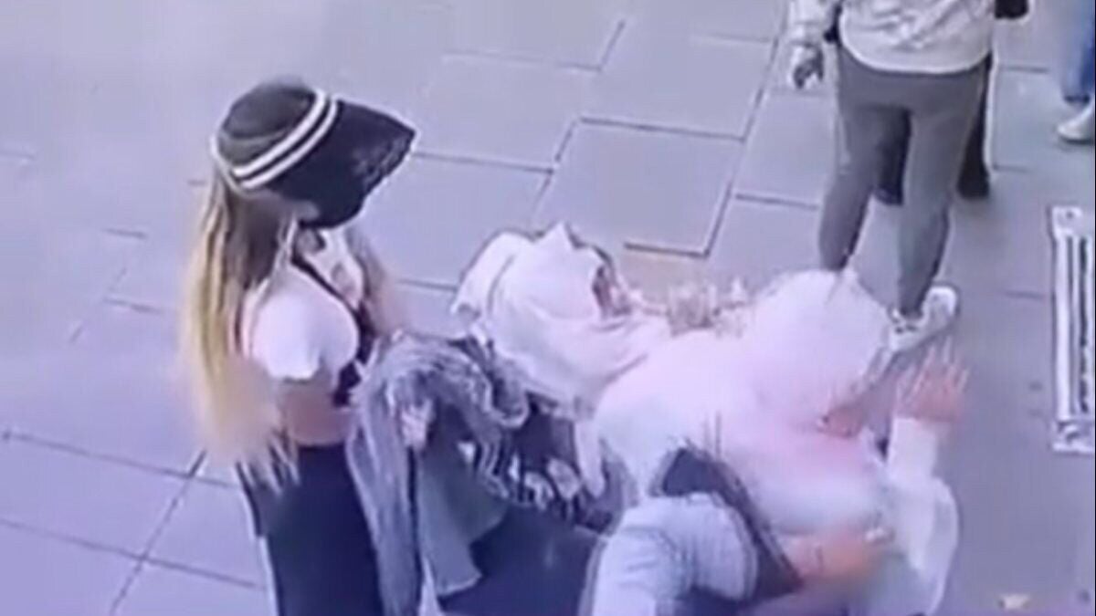 İstanbul'un Fatih ilçesinde öğle saatlerinde yaşanan bir olayda, iki kadın mağazının önündeki kadınları gözlerine kestirdi.