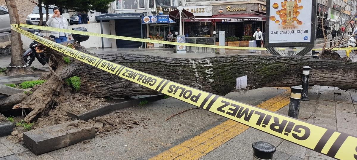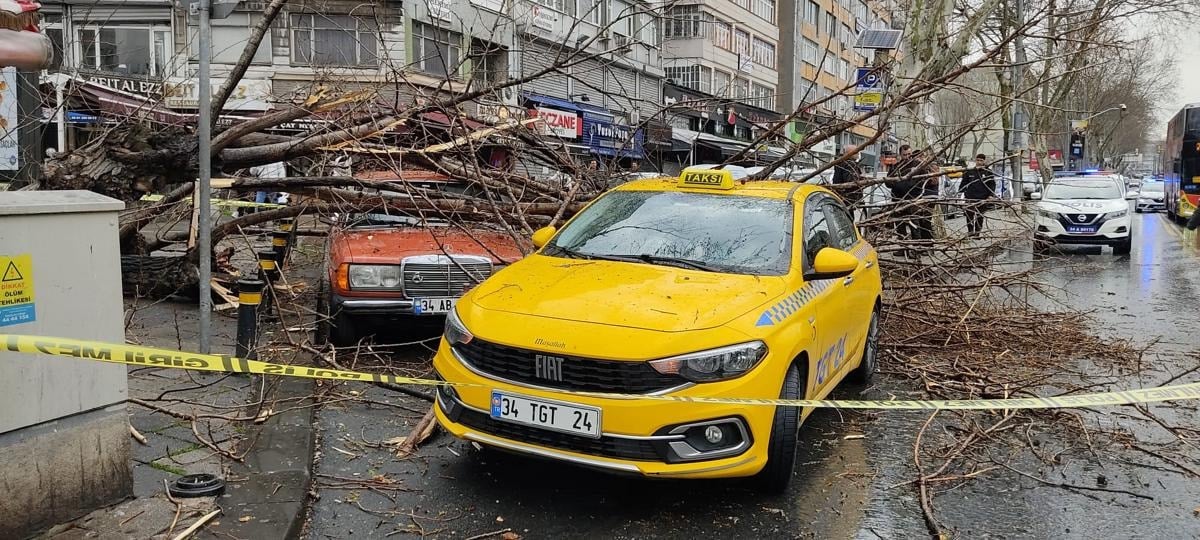 Edinilen bilgiye göre, yol kenarında bulunan asırlık ağaç biri ticari taksi olmak üzere iki aracın üstüne devrildi.