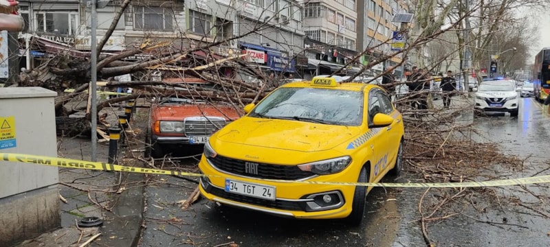 Arabamda müşteri vardı, onu indirdim. Kırmızı ışık yandı, durdum. Durduğum anda bir gürültü koptu. Araba çarptı sandım, baktım ağaç arabanın üstüne düşmüş, camlar kırılmış. Çok büyük bir gürültü koptu. Arabamızda hasar oluştu.