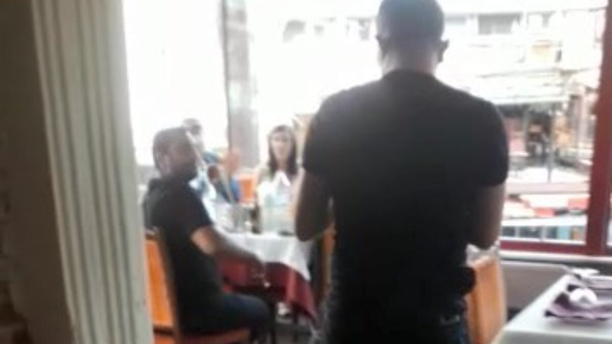 Bir restorantın üst katında cam kenarında üç kadın ve bir erkek müşterinin alkol alıp, çalgıcı eşliğinde canlı müzik dinletisi ile eğlendikleri görüldü.