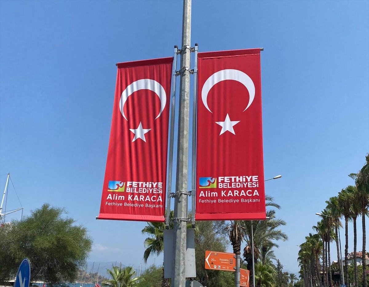 Muğla Valiliğinden yapılan açıklamada, ilçede ana caddelerdeki elektrik direklerinde bulunan reklam panolarına bayrak üzerinde belediye başkanının adı ile Fethiye Belediyesi logosunun yer aldığı görsellerin asıldığının tespit edildiği bildirildi.