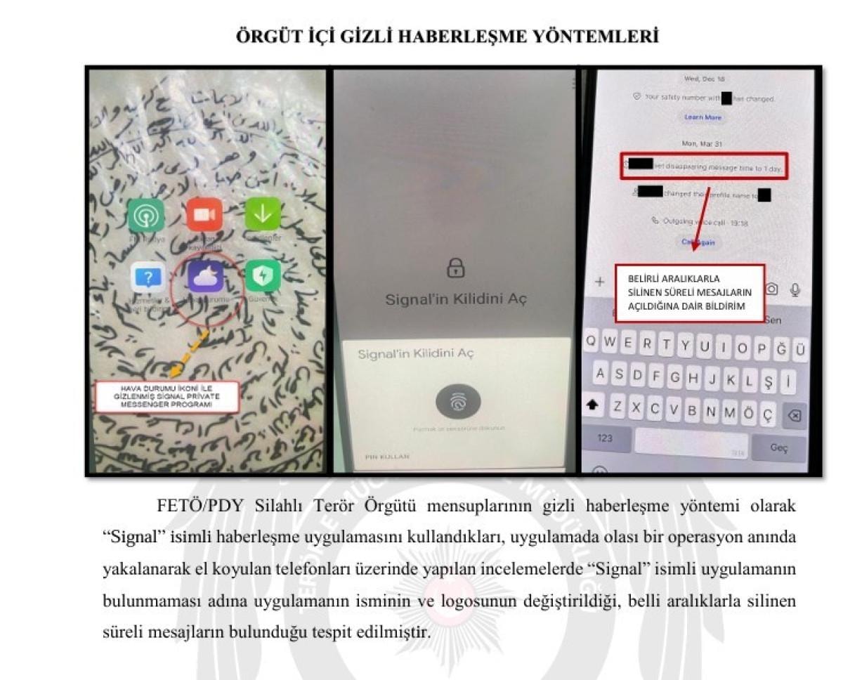 Örgüt mensuplarının gizli haberleşme yöntemi olarak kullandıkları "Signal" isimli haberleşme uygulamasını yoğun olarak kullandıkları, uygulamada muhtemel bir operasyon anında yakalanarak el koyulan telefonları üzerinde yapılan incelemelerde "Signal" isimli uygulamanın bulunmaması adına uygulamanın isminin ve logosunun değiştirildiği, belli aralıklarla silinen süreli mesajların bulunduğu tespit edildi.