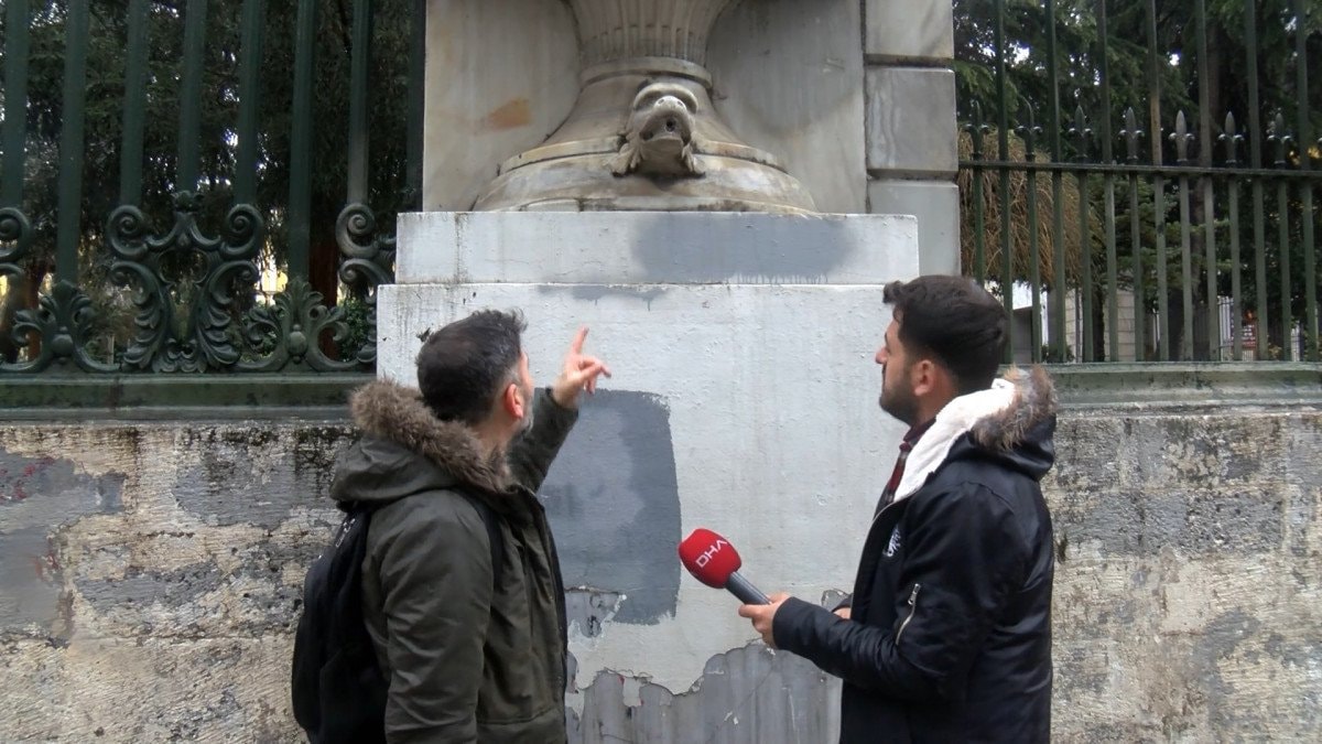 Maalesef biz de 8 Mart'tan sonra fark ettik. Sosyal medyadan arkadaşımız bana bu konuda birkaç fotoğraf attı. Ben de geçerken gördüm. Hakikaten artık yerinde yoktu. Çok kıymetli bir heykeldi. Tabii biz araştırmalar yaptık ve burada Galatasaray Lisesi'nin güvenlik görevlileriyle görüştüm. Kendi kameralarının kör noktası olduğu için burada olanları göremediklerini, tespit edemediklerini söylüyorlar. 1868 Mekteb-i Sultani diye geçer ama biz şu an Galatasaray Lisesi diyoruz. Heykelin tarihçesini araştırdığımızda bu heykel aslında lisenin kuruluşundan, imarından itibaren burada olduğunu görüyoruz. Bir buçuk asır geçti. 150 yıldan fazla ömürlü bir heykel ama maalesef artık yok.