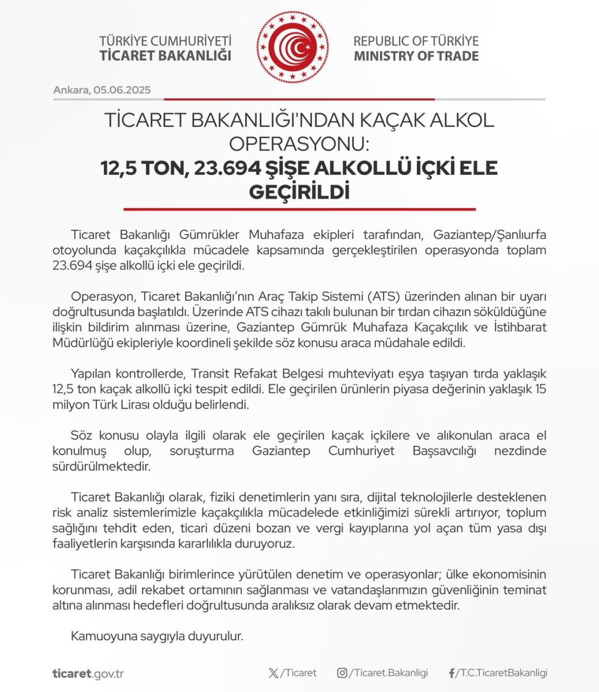 Bakanlık, bu operasyonla kaçak ürünlerin piyasaya sürülmesini engelleyerek hem kamu sağlığını korudu hem de ekonomik kayıpların önüne geçti.