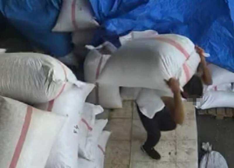 Görüntülerde, şahsın rahat tavırlar sergileyerek dükkan içerisindeki 535 kilogram ağırlığındaki 7 çuval fıstığı tek tek taşıdığı anlar yer aldı.