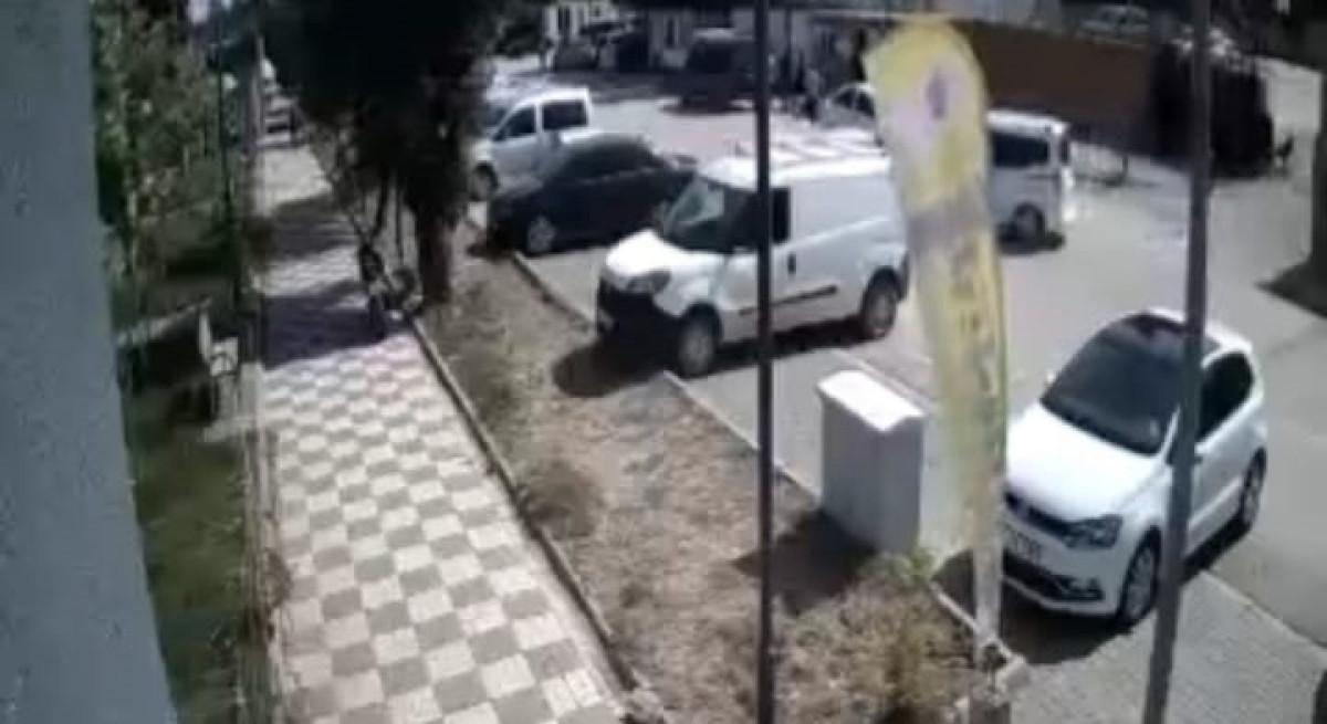 Yaşananlar, çevredeki iş yerinin güvenlik kamerasına yansıdı.