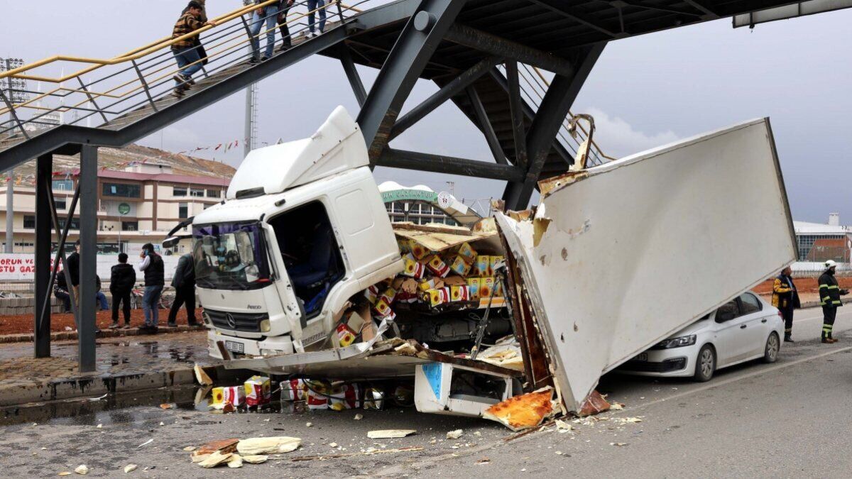 Gaziantep'te öğleden sonra Seyrantepe Mahallesi’nde Abdulcebbar Butnar yönetimindeki 33 BBD 66 plakalı yağ taşıyan tır, sürücüsünün direksiyon kontrolünü yitirmesi sonucu üst geçidin demir ayağına çarptı.