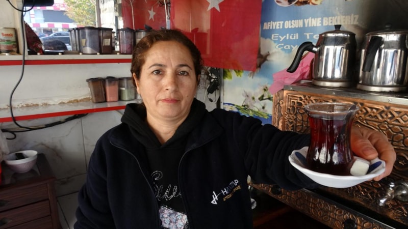 Eşinin çay ocağında çalışmaya başladıktan sonra çarşı esnafına ve çay ocağına gelen müşterilere çay servis etmeye başlayan Gülay Kaya, bir yandan eşinin eleman sıkıntısını gidermenin bir yandan da evine birlikte ekmek götürmenin mutluluğunu yaşıyor.