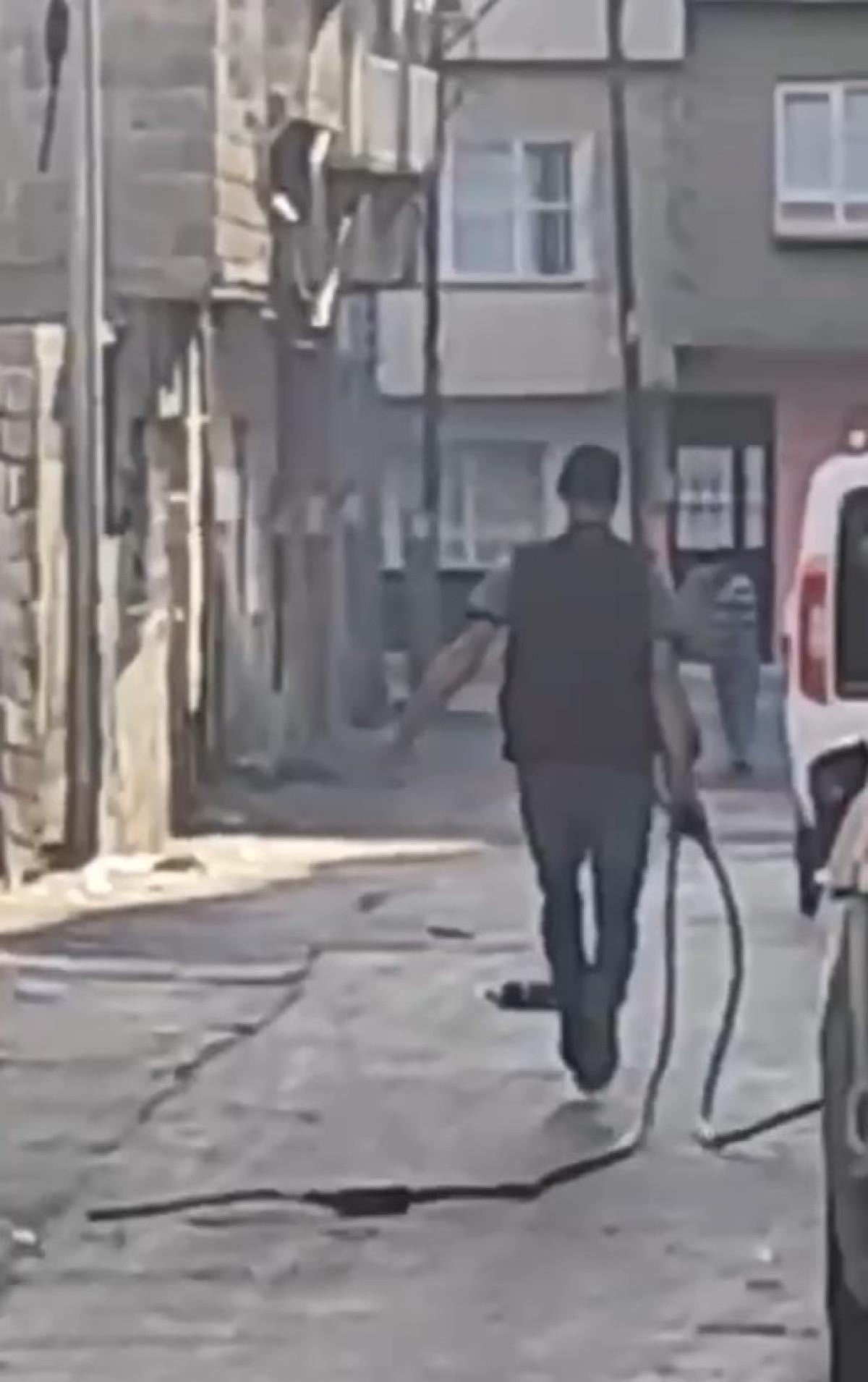 Gaziantep'in Şahinbey ilçesine bağlı Bekirbey Mahallesi'nde meydana gelen olayda, güpegündüz bir evin önündeki kabloları çalan 3 şahıs, bir vatandaşın cep telefonu kamerasına yansıdı.