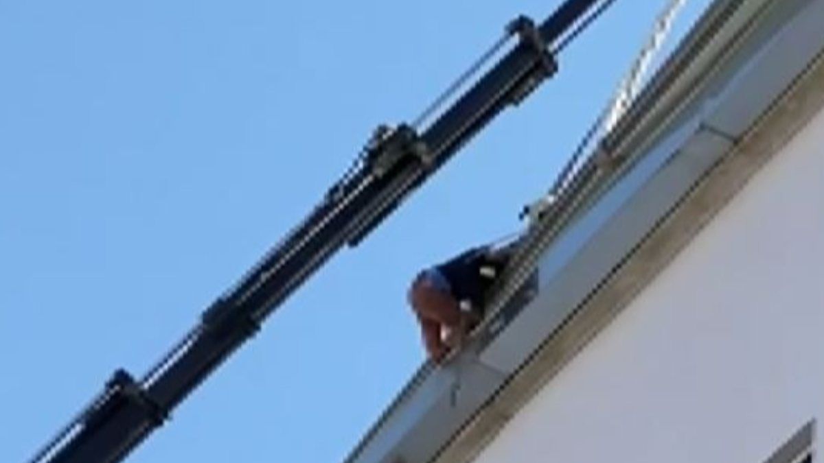 Gaziantep'te inşaat işçisi çatıda asılı kaldı VİDEO