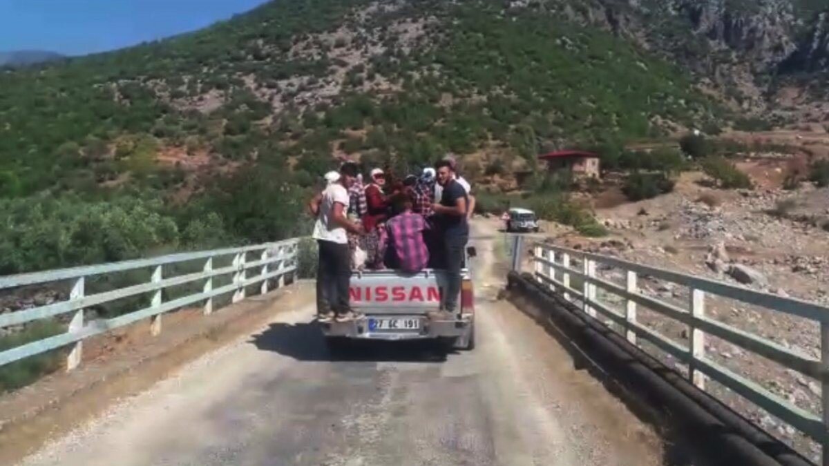 Kamyonet kasasının içine sığmayan işçilerden bazıları, kasanın dış bölümündeki demirlere tutunarak yolculuk yaptı.
