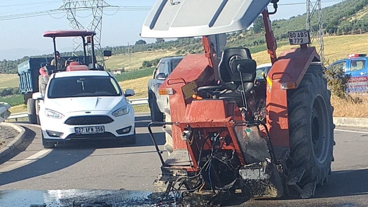 Kazanın şiddeti ile traktör ikiye ayrıldı.