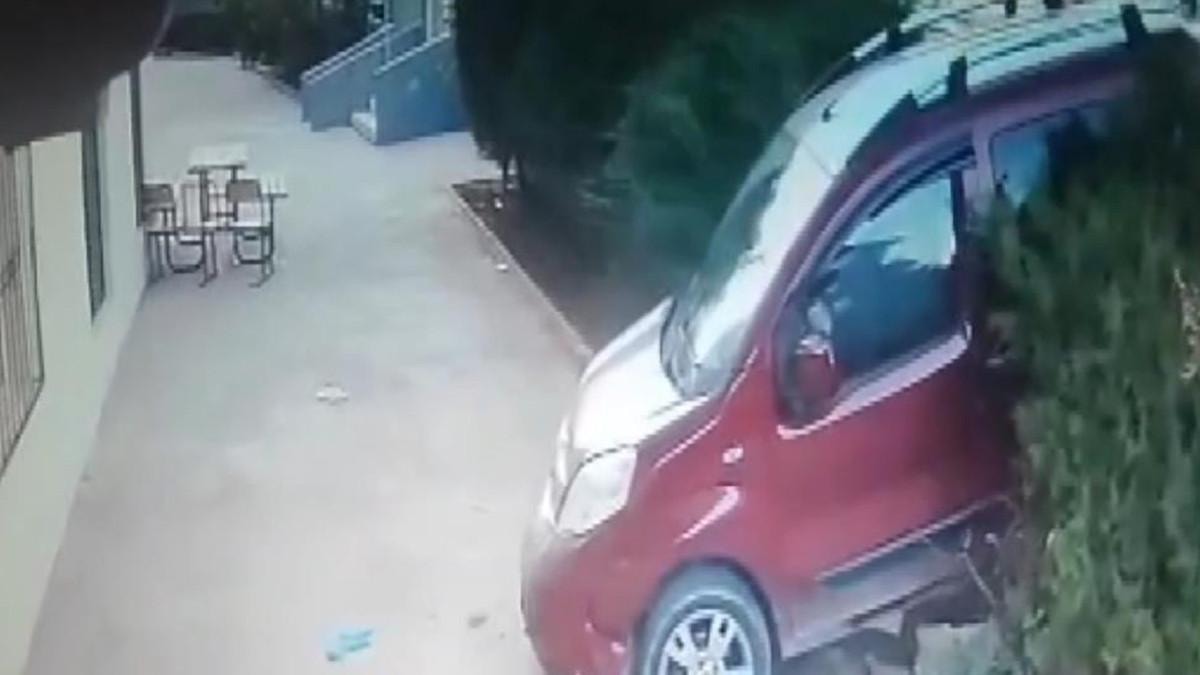 Görüntülerde kontrolden çıkan aracın apartman bahçesine dalma ve çevredeki vatandaşların yardıma koşma anları yer aldı.