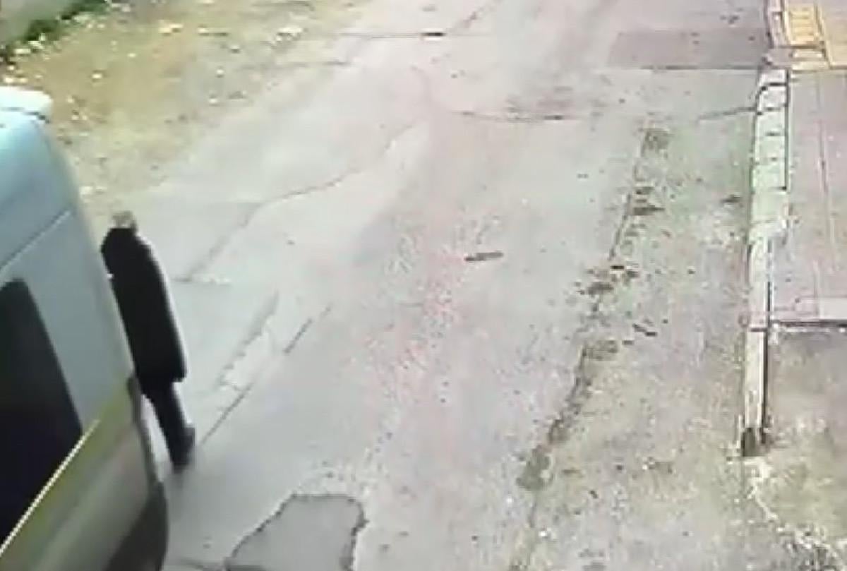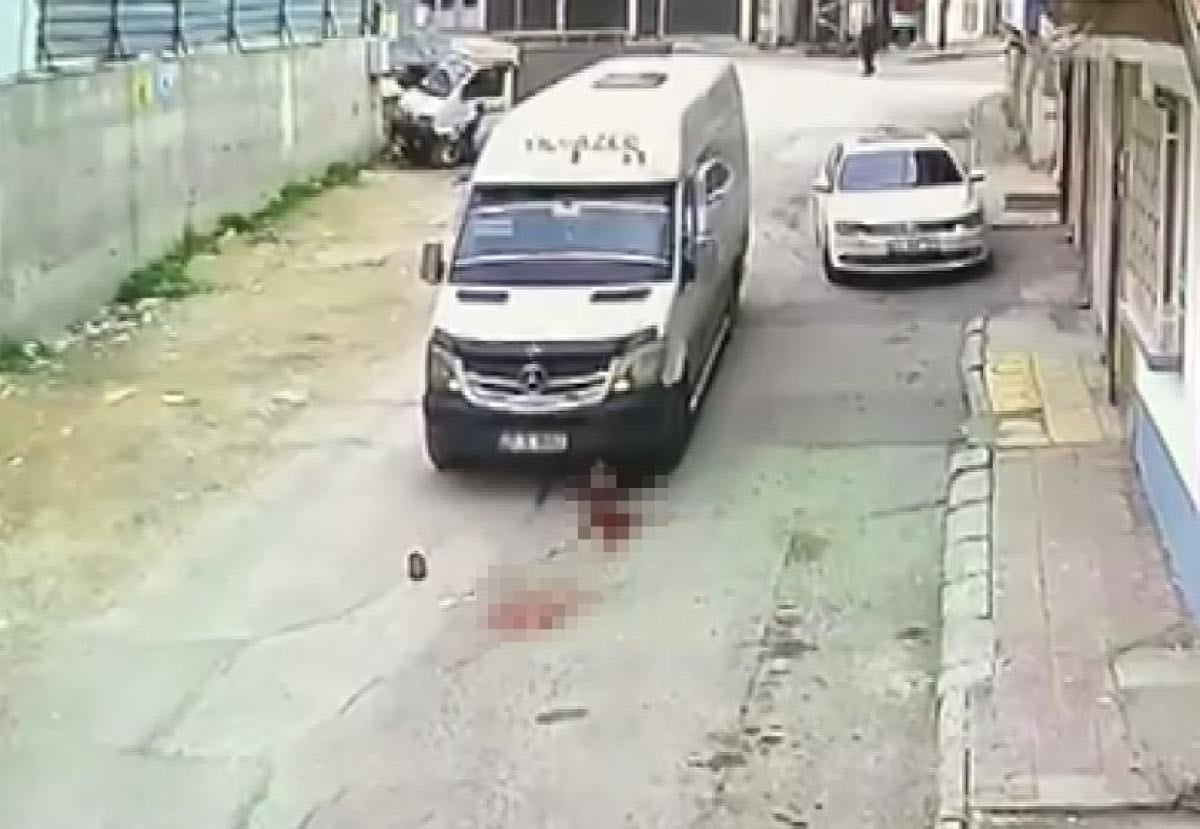 Görüntülerde, yaşlı adamın sokakta yavaş adımlarla yürürken geri manevra yapan servisin altında kalarak öldüğü anlar yer aldı.