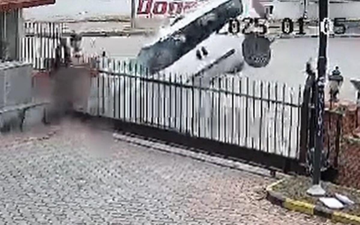 Meydana gelen feci kaza bir iş yerinin güvenlik kamerasına yansırken görüntülerde ise hızla ilerleyen hafif ticari aracın bir fabrika duvarına çarptığı anlar ve fabrikadan yardıma koşan vatandaşlar yer aldı.