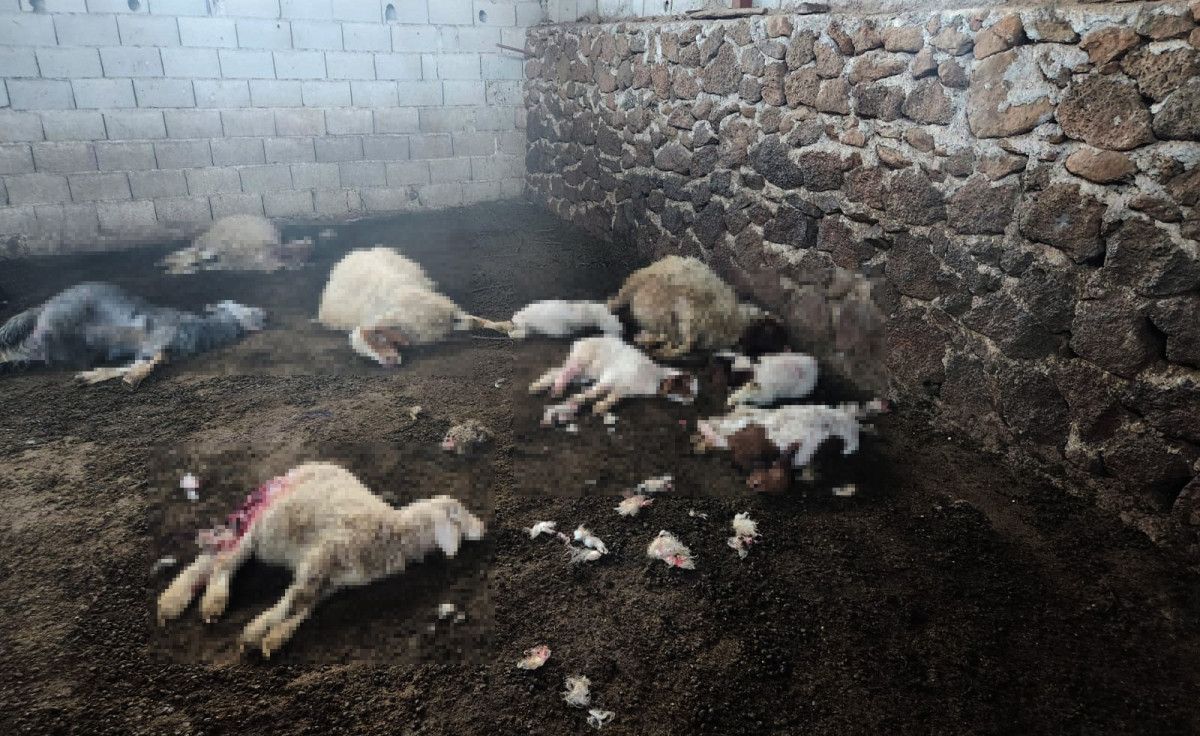 Gaziantep'in İslahiye ilçesi Şerikanlı Mahallesi'nde besicilik yapan ve 110 koyun besleyen Reşit Türkoğlu'nun hayvanlarının bulunduğu ahıra, gece geç saatlerde kurtlar saldırdı.