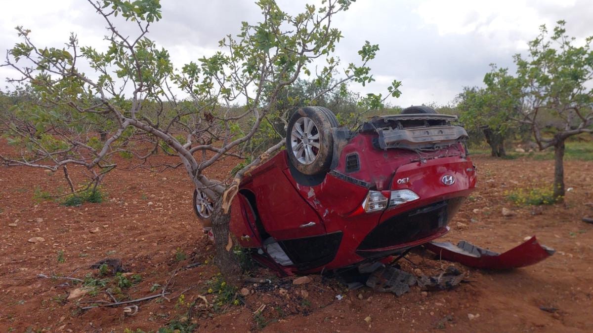 Kontrolden çıkan otomobil, taklalar atıp bir süre savrulduktan sonra, yol kenarındaki Antep fıstığı bahçesine uçarak durabildi.