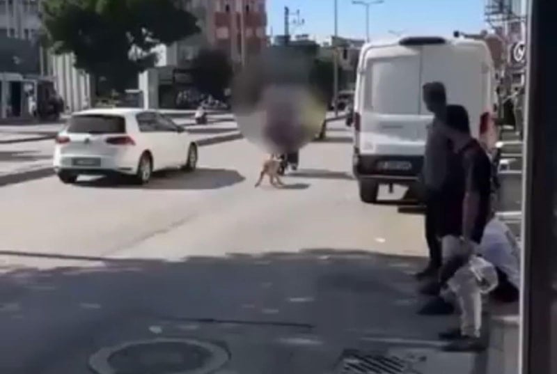 O anlar çevrede bulunan bir vatandaş tarafından cep telefonuyla kaydedildi. Görüntülerde köpeğin motosikletin arkasına bağlandığı ve zorla sürüklenerek götürüldüğü anlar yer aldı.