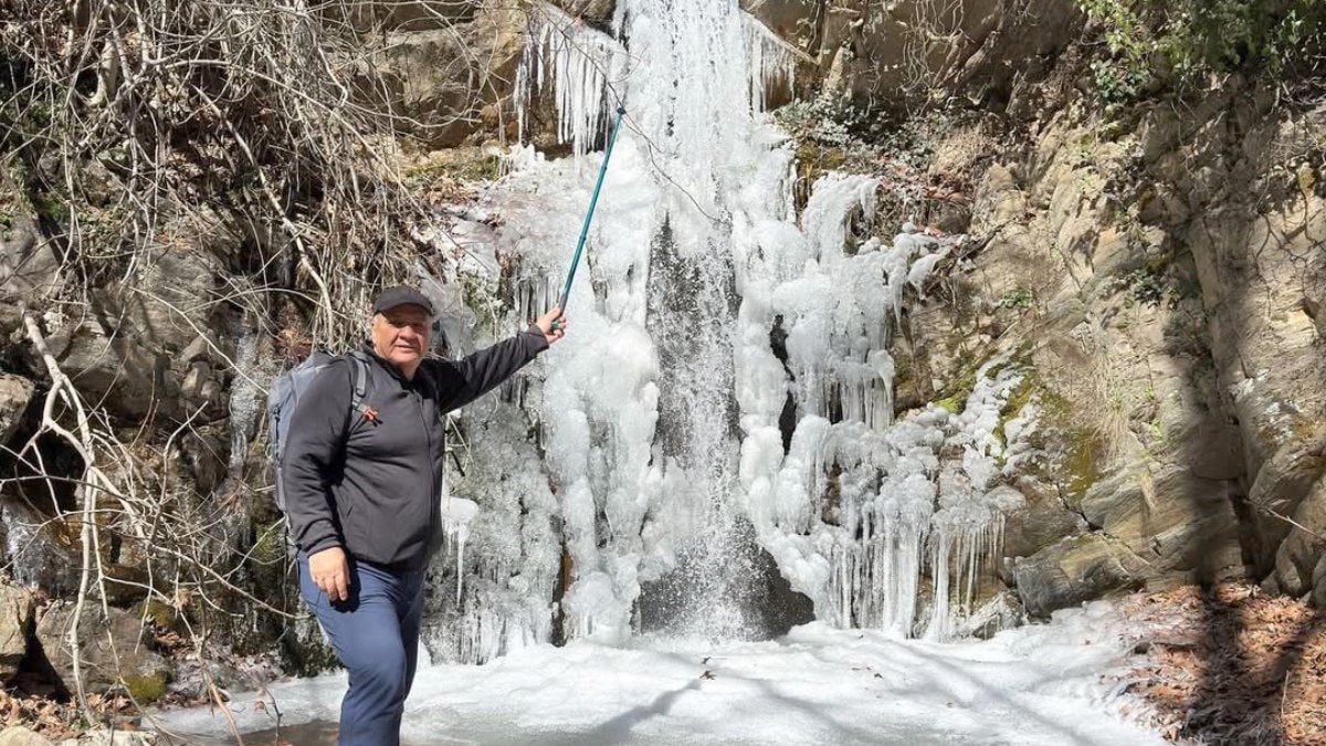 Doğa sporları tutkunu Hasan Şenocak, “Amanoslar'a İdilli üzerinde gerçekleştirdiğimiz yürüyüşümüzde doğal akan şelalenin buz tuttuğunu fark ettik.