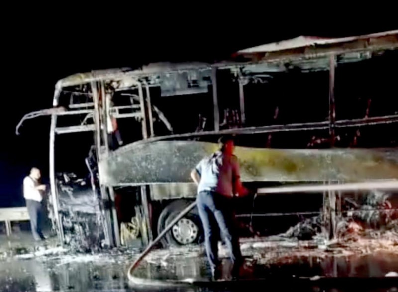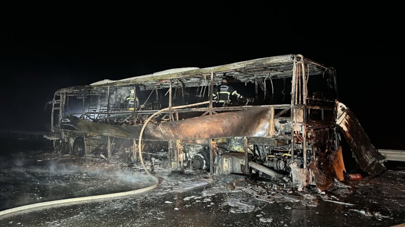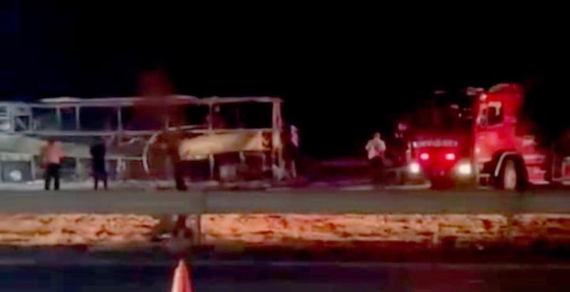 Otobüsün tamamen yanıp, hurdaya döndüğü belirtildi.