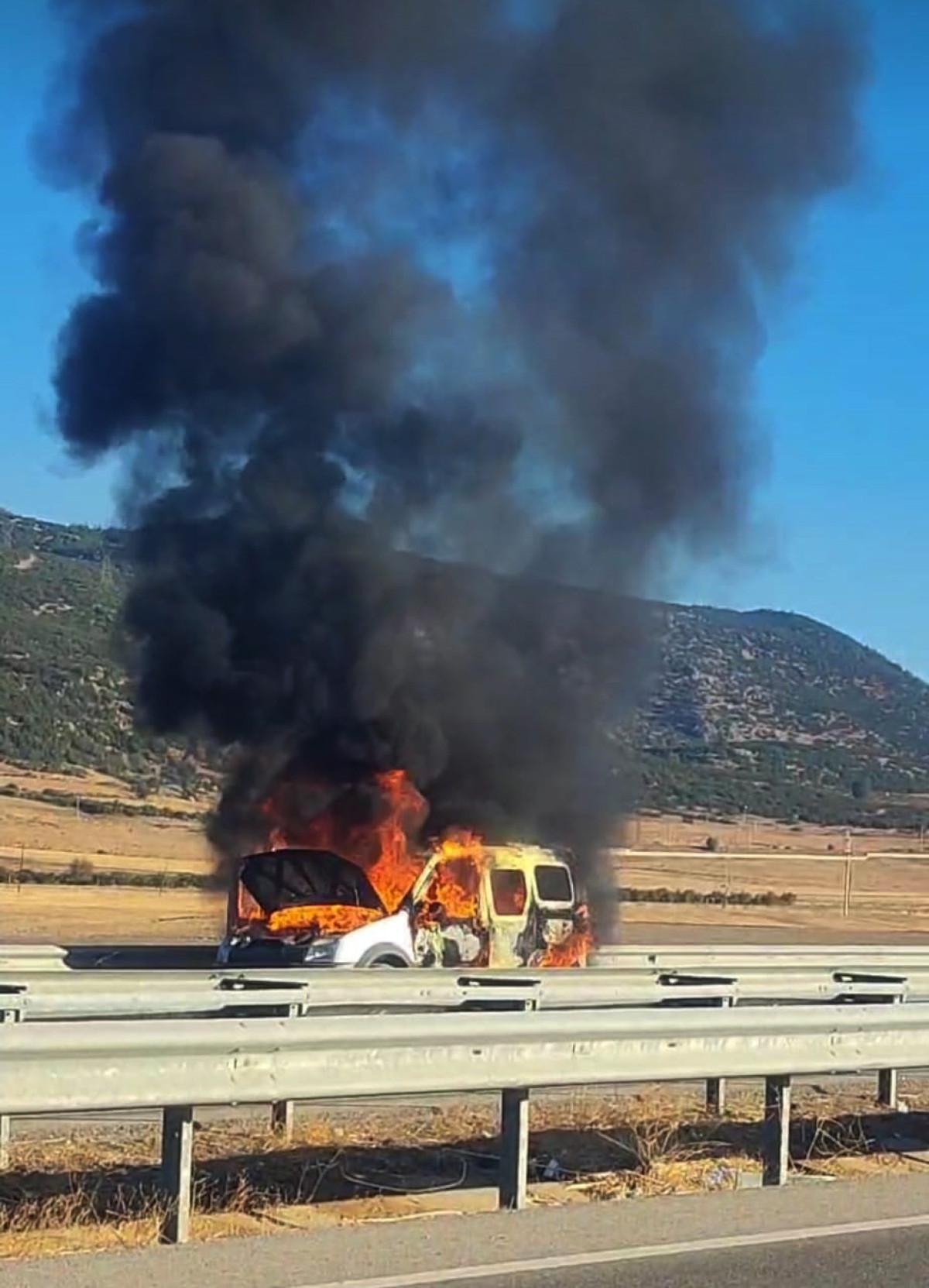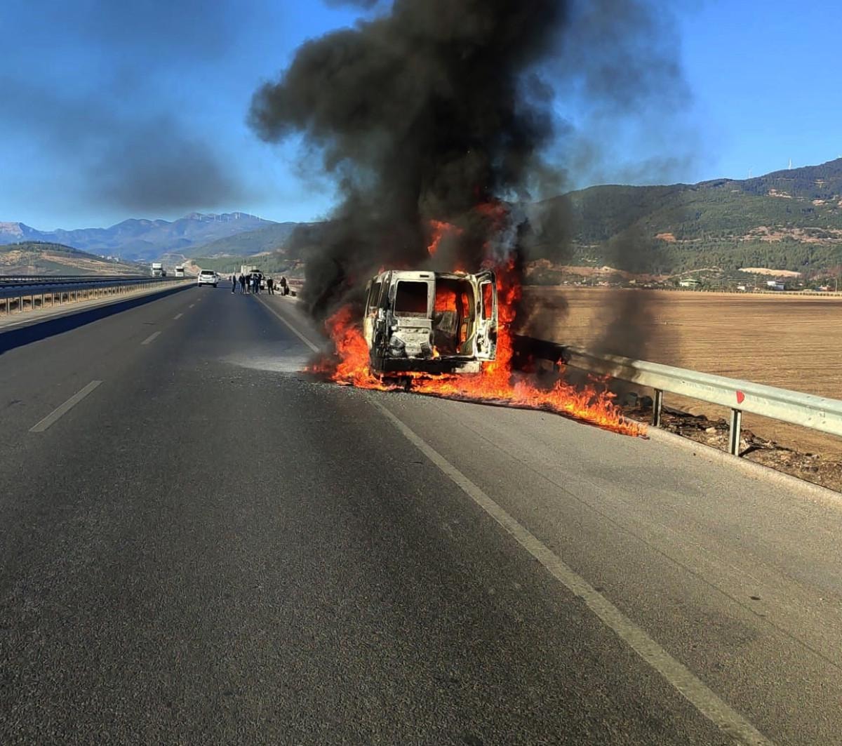 Gaziantep İslahiye-Nurdağı yolunun 17’nci kilometresinde sabah saatlerinde Ahmed Şaban (45) yönetimindeki 27 AIZ 271 plakalı hafif ticari araç, hareket halindeyken yanmaya başladı.