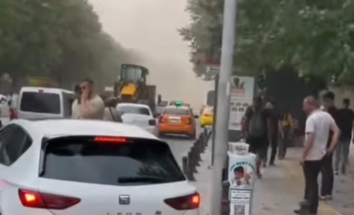 Fırtına nedeniyle kent merkezinde toz bulutu etkili oldu.