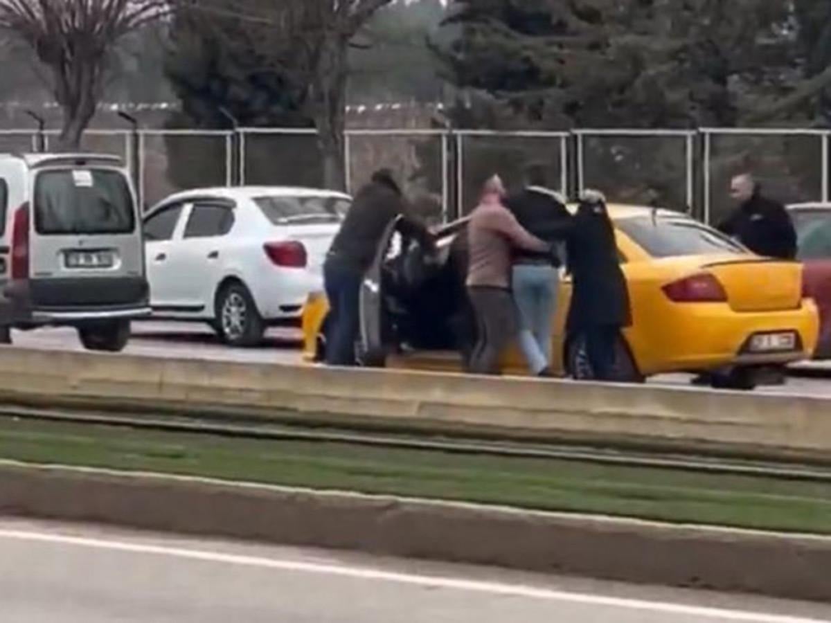 Durumu fark eden bazı vatandaşlar olay yerine koşarak kavgayı ayırmaya çalışırken diğer sürücüler ise kornalarına basarak duruma tepki gösterdi.