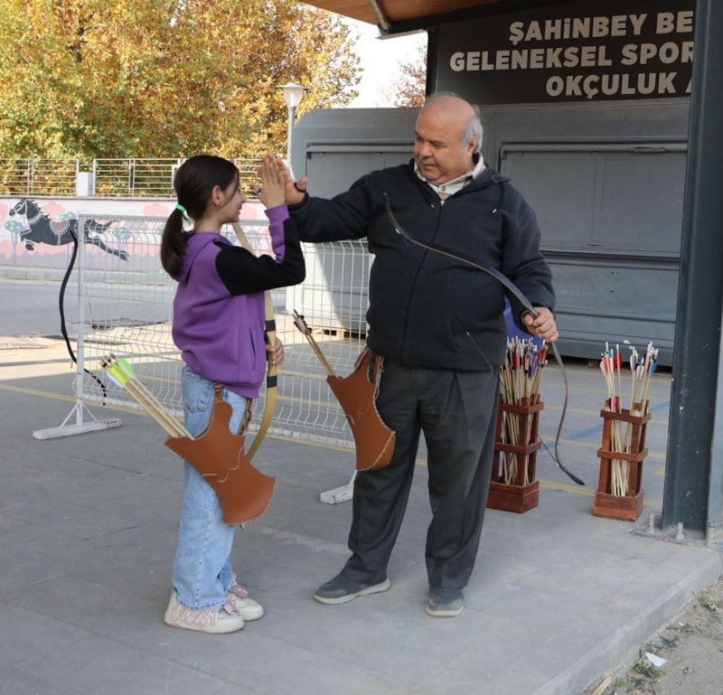 Gaziantep'te yaşayan Öztuzcu Ailesi'nin kızları 4'üncü sınıf öğrencisi Nisa, izlediği tarih dizilerinden etkilenerek babasına ok atmak istediğini söyledi.