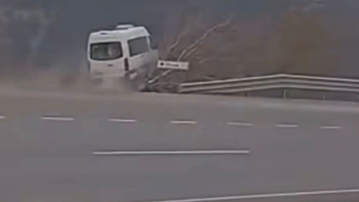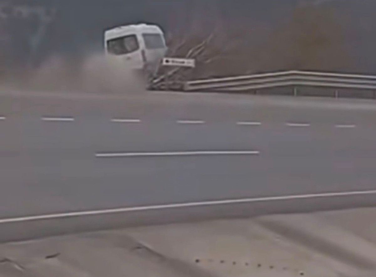Görüntülerde yoğun trafikte araçlar güçlükle ilerlerken, kontrolden çıkan minibüsün karşı şeride geçerek şarampole uçma anları ve yaşanan panik yer aldı.