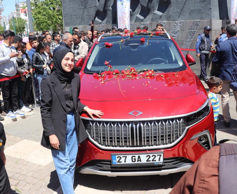 Togg'un ön koltuğundan cama çıkarak halka seslenen Büyükşehir Belediye Başkanı Fatma Şahin, çok gururlu olduklarını söyledi. Toog'un Gaziantep'e çok yakıştığını belirten Şahin, ''Ardımızda Gazi Mustafa Kemal Atatürk. Türkiye Yüzyılı'na yürüyoruz. Tam bağımsız Türkiye'nin yüzyılı olacak. Annelerin, gençlerin yüzyılı olacak. Togg'a da maşallah, yapana da maşallah, yaptırana da maşallah.'' dedi.