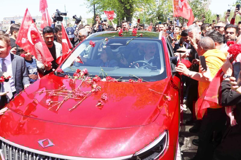 Toog'u kullanan AK Parti Gaziantep 1'inci sıra milletvekili adayı ve eski Adalet Bakanı Abdulhamit Gül, ön koltuğa oturan Gaziantep Büyükşehir Belediye Başkanı Fatma Şahin ile meydana geldi. Halk, üzerine karanfiller atarak karşıladıkları Togg'la fotoğraf çektirdi.