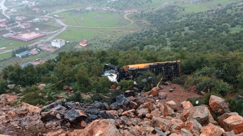 Yasin Soylu'nun kontrolünü yitirdiği boksit madeni yüklü tır, uçuruma devrildi.