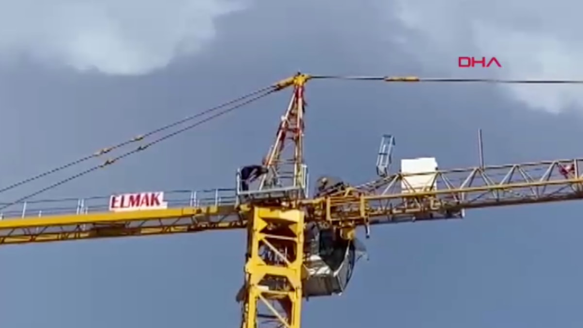 Yerden 45 metre yükseklikte namazını kılan operatör, oğlu Yusuf Turan Kan'ın 6'ncı doğum günü için hazırladığı balonları ve Türk bayrağını da vince astı.