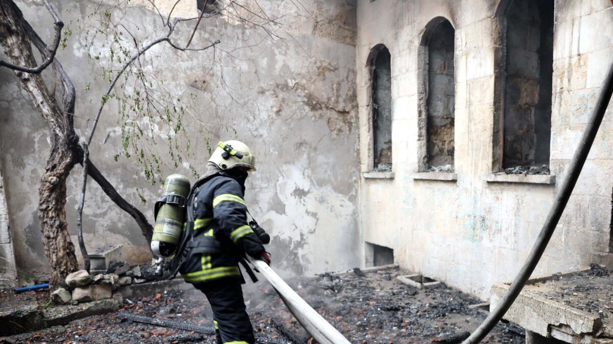 Gaziantep'teki Şekeroğlu Mahallesi'ndeki 2 katlı metruk binanın giriş katında, öğle saatlerinde, yangın çıktı.