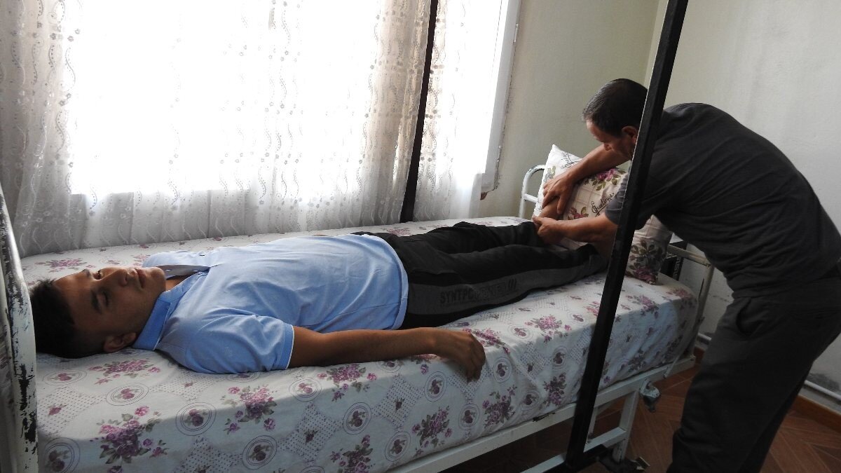 16 yaşındaki bir genç 5 yıldır yerde yaşıyor ve doktorlar da 10 yıl sonra ancak kendi başına oturabilir diyorlar. Ben 5 yıldır tek bir iş yapmıyorum sadece oğluma bakıyorum. Ankara’ya, İstanbul’a, Kayseri’ye, Afyonkarahisar’a gittim yani aşağı yukarı ameliyatlara 700 bin TL’ye yakın paramız gitti. Herkes başımıza neler geldiğini biliyor kimisinden borç bilezik aldık kimisinden para almışız bu şekilde ödedik. Ben en azından oğlumun geleceği için bir şeyler yapmak istiyorum. Ben bugün varım yarın yokum. Allah korusun bana bir şey olsa oğluma ne olacak? Oğlumun hayatı kurtulsun başka bir şey istemiyorum. Parayla mı hayatı kurtulacak hayır ama en azından bir geleceği olacak ve kendisine bakacak birileri olur.” ifadelerini kullandı.