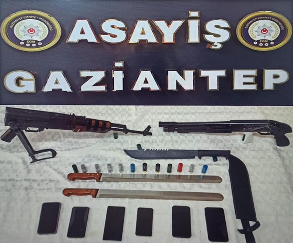 Adreslerde yapılan aramalarda ise 1 adet AK-47 piyade tüfeği, 1 pompalı tüfek, 3 adet sallama tabir edilen kesici alet ve 20 adet pompalı tüfek kartuşu ele geçirildi.