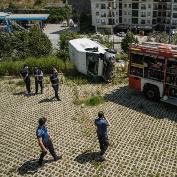 İstanbul'un Gaziosmanpaşa ilçesine bağlı Bağlarbaşı Mahallesi'nde, Yakup Akgül'ün kullandığı 34 GZ 9965 plakalı panelvan minibüs, yokuş aşağı indiği sırada sürücüsünün direksiyon hakimiyetini kaybetmesi üzerine 5 metre yükseklikten boş alana düştü.