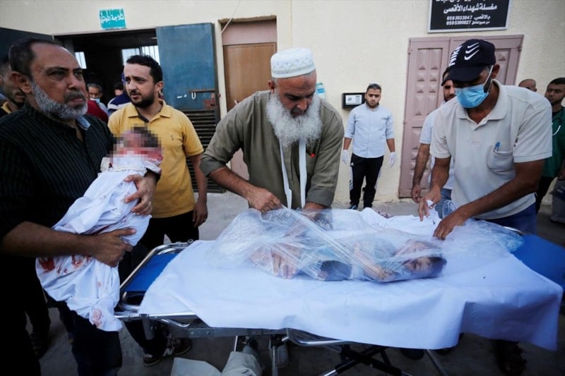 Öyle ki masum sivillerin sığındığı El Ahli Hastanesi'ni vuran İsrail, sırf burada 500'den fala sivili tek saldırıda katletti.