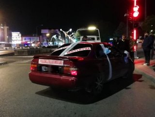 Erzincan merkez Dörtyol Kavşağı'nda, trafik ekiplerinin ‘dur’ ikazına riayet etmeyip kullandığı gelin arabası olarak süslenmiş otomobili polislerin üzerine kıran sürücü, kısa sürede yakalandı.