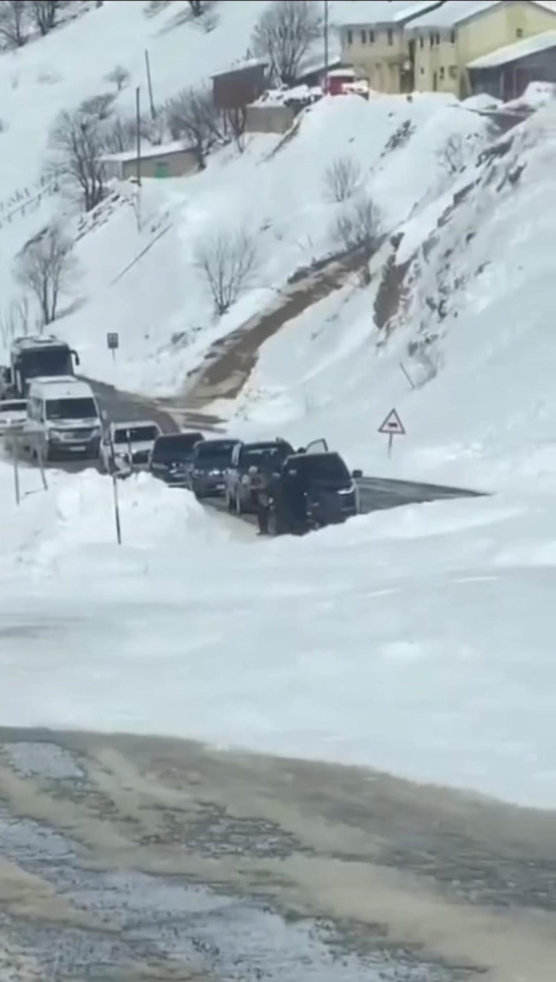 Çığın ardından yolda mahsur kalan bazı sürücülerin ise kendi imkanlarıyla yolu açmaya çalıştıkları anlar cep telefonu kameralarına yansıdı.