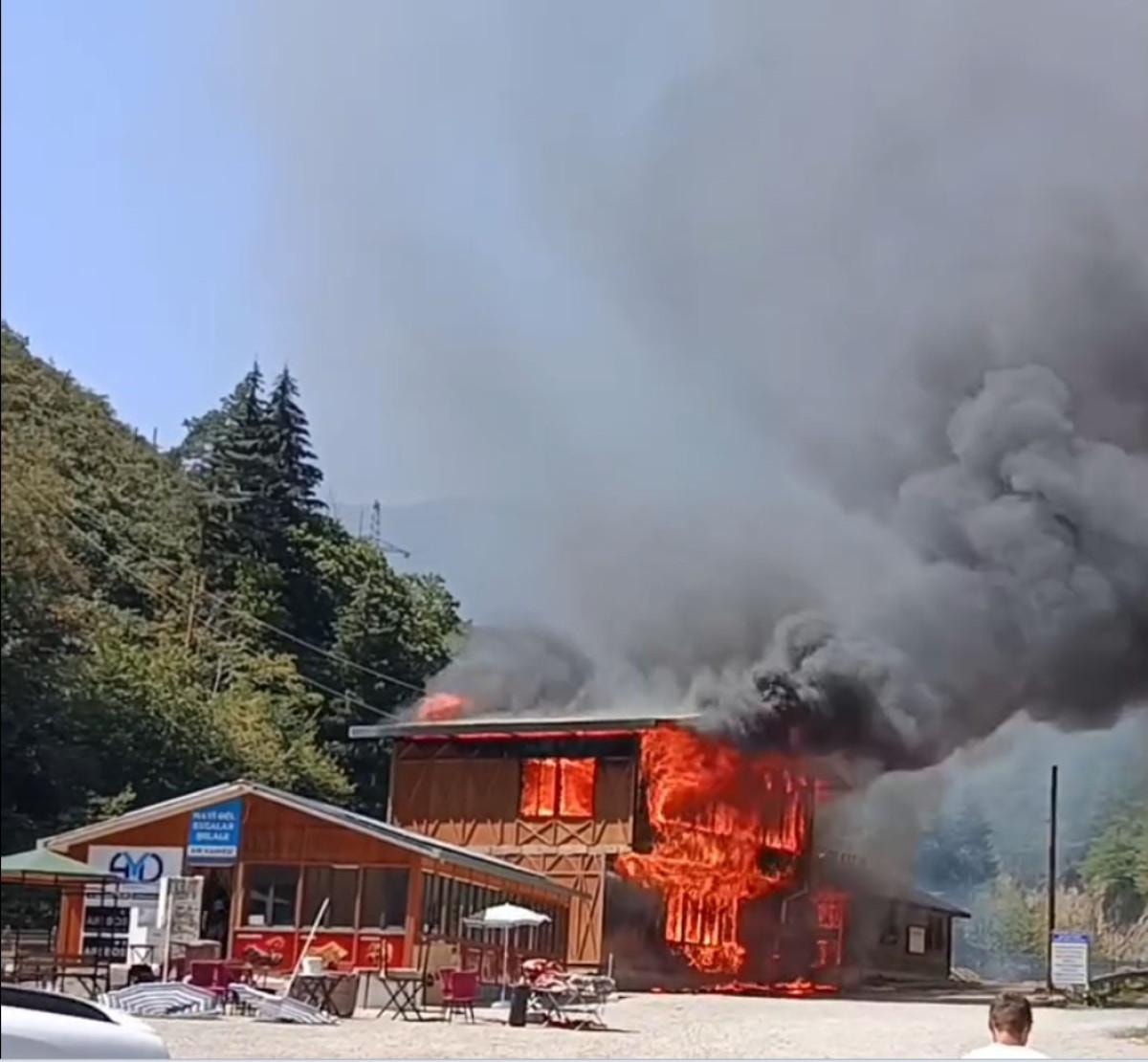 Restoran ve kafe olarak kullanılan tesis, hızlı tahliye sayesinde can kaybı ya da yaralanma olmadan boşaltıldı.