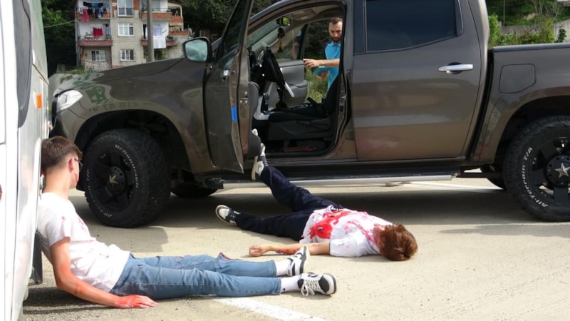 Senaryo doğrultusunda, Dereli yolu üzerinde meydana gelen zincirleme trafik kazasında bir araç, Aksu Deresi'ne düştü. Araç içindeki bazı kişilerin ağır yaralanıp otomobilde sıkışmaları ve bazı yaralıların dereye düşüp kaybolmaları sonucu, olay yerine sağlık ve arama kurtarma ekipleri yönlendirildi.