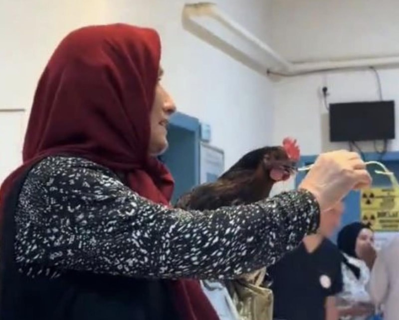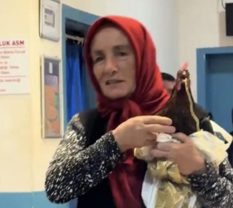 Kadın, sağlık görevlilerinden tavuğun röntgeninin çekilmesini istedi.