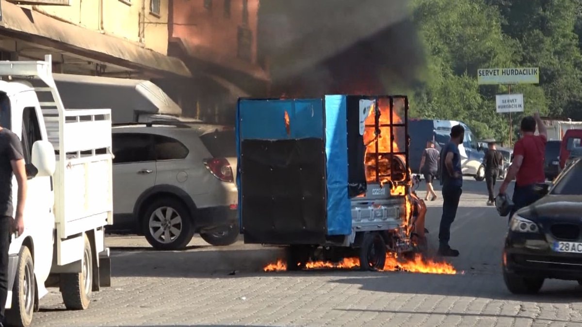 Kağıt toplayıcısı grup başka bir araçla olay yerinden kaçarken, itfaiye ekipleri yanan aracı söndürdü.