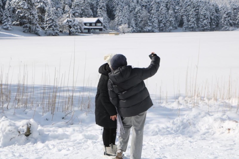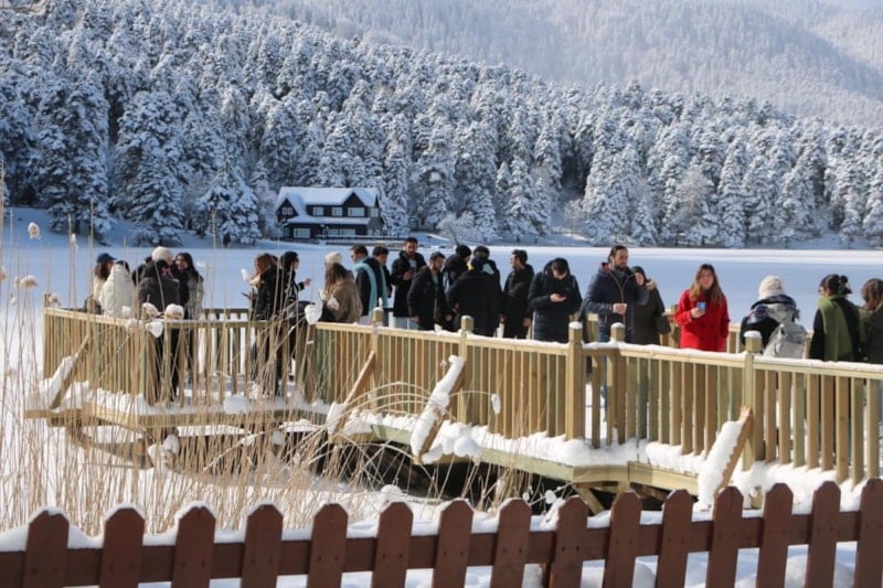 Bolu'nun karla kaplı doğa harikası Gölcük Tabiat Parkı, hafta sonu ziyaretçi akınına uğradı.